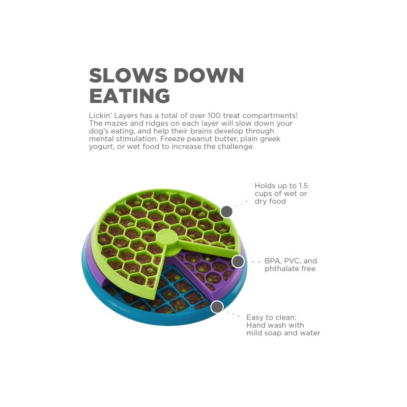 Gra Lickin Layers zachęca do swobodnej zabawy w poszukiwanie smakołyków! Zacznij od napełnienia przegródek przysmakami lub suchą karmą. Potem zachęć pupila do eksploracji zabawki.