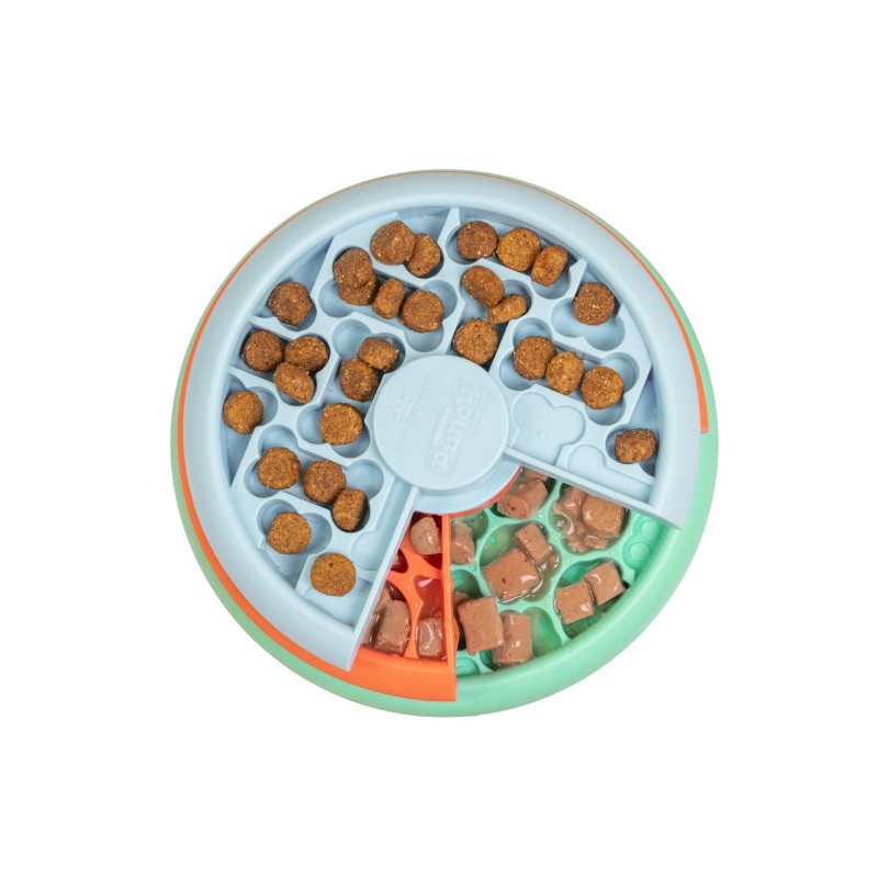 Powolne jedzenia sprzyja poprawnemu trawieniu. Ilość przegródek zachęca psa do jedzenia w bezpieczniejszym, wolniejszym tempie.