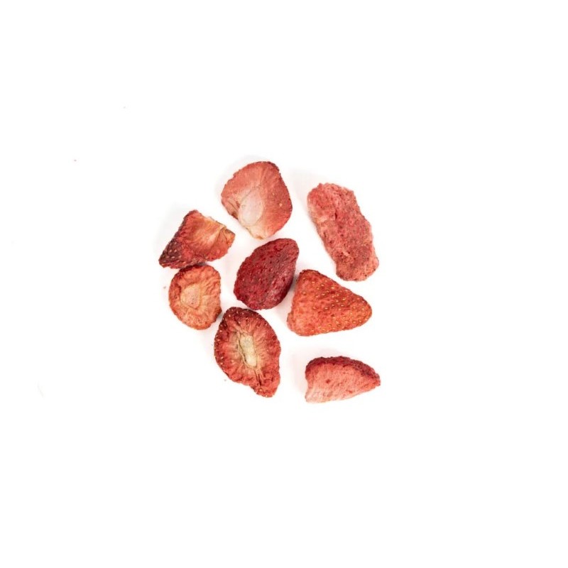 Truskawki możesz podać psu nie tylko latem. Dzięki procesowi liofilizacji zachowują wszystkie wartości odżywcze i mogą wylądować w misce psiaka przez cały rok. Możesz użyć ich jako nagrody w treningu czy na spacerze, bo psy uwielbiają smak liofilizowanych owoców, a dzięki ich suchości i chrupkości jedzą je dużo chętniej niż surowe.