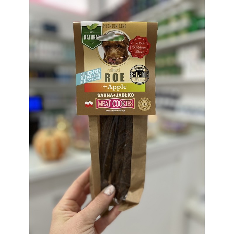Skład: 75% mięsa z sarny, 25% jabłko.