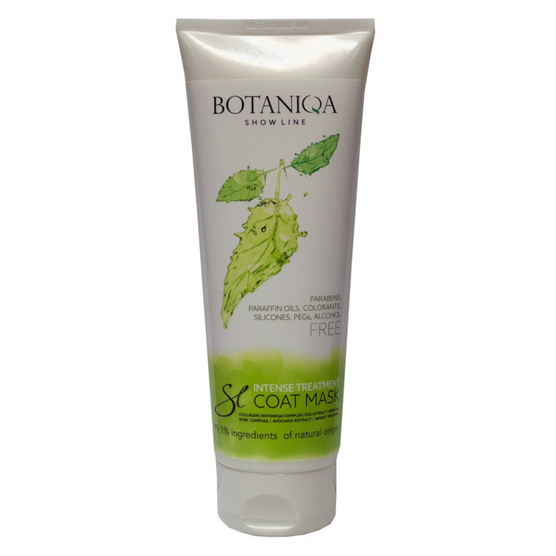 Botaniqa Show Line Intense treatment Coat Mask to kolagenowo - keratynowa maska sformułowana aby zregenerować, głęboko nawilżyć, zabezpieczyć, dodać jedwabistości oraz blasku. Pomaga w zapanowaniu nad włosem, sprawia że jest on łatwiejszy w modelowaniu. Przy regularnym stosowaniu szata staje się błyszcząca, zdrowsza, silniejsza, a rozczesywanie łatwiejsze. Regularnie stosowana zmniejsza ryzyku uszkodzeń, łamania końcówek, idealna do budowy włosa. Efektywnie ułatwia rozczesywanie i zabezpiecza przed powstawaniem kołtunów.