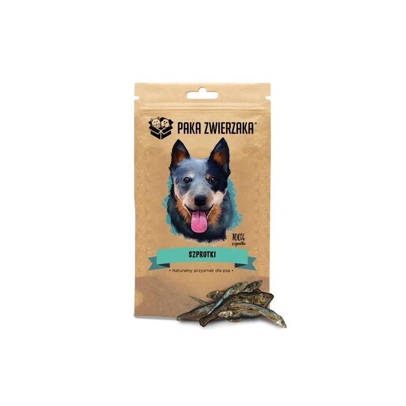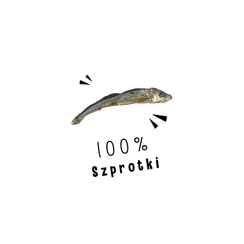 Przysmak wykonany ze świeżo przygotowanego mięsa ze szprotki suszony ciepłym powietrzem. Naturalny przysmak stanowiący doskonałe uzupełnienie posiłków dla psów każdej wielkości. Suszenie ciepłym powietrzem nadaje mu niezwykłej kruchości i chrupkości. Podczas gryzienia masuje dziąsła, czyści kamień nazębny i stanowi zdrowy przysmak dla zwierzaka. Produkt nie zawiera konserwantów, wzmacniaczy smaku, aromatu oraz wypełniaczy. Przeznaczony jest dla psów każdej wielkości.