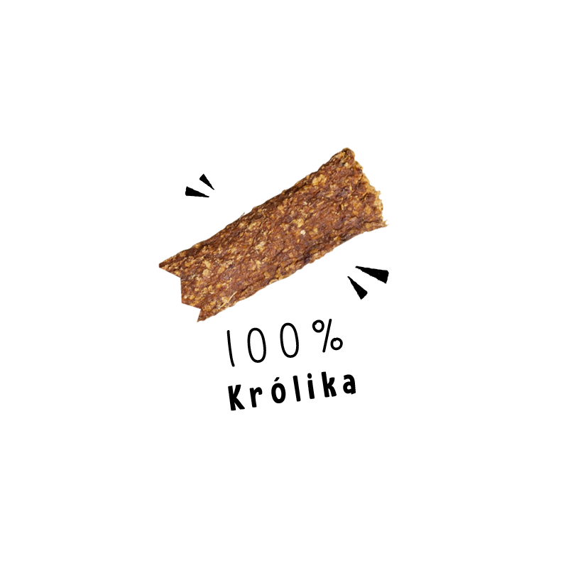 Stripsy wykonane ze 100% świeżo przygotowanego mięsa królika. Naturalny przysmak stanowiący doskonałe uzupełnienie posiłków dla psów każdej wielkości. Suszenie ciepłym powietrzem nadaje mu niezwykłej kruchości i chrupkości. Podczas gryzienia masuje dziąsła, czyści kamień nazębny i stanowi zdrowy przysmak dla zwierzaka. Produkt nie zawiera konserwantów, wzmacniaczy smaku, aromatu oraz wypełniaczy.