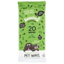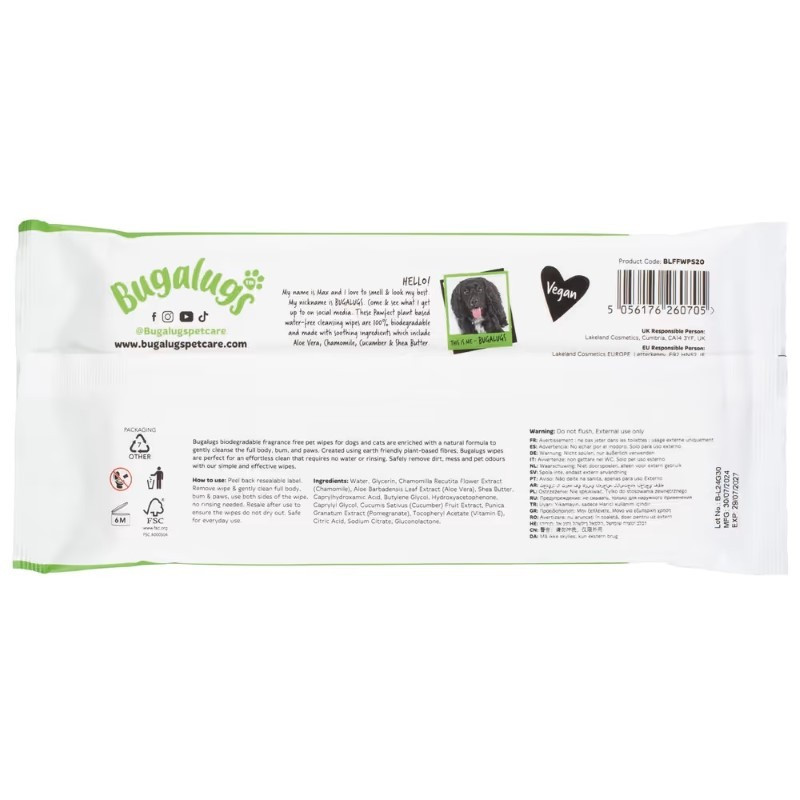 Bugalugs - Fragrance Free Pet Wipes 20szt - Bezzapachowe nawilżane chusteczki dla psa i kota, biodegradowalne