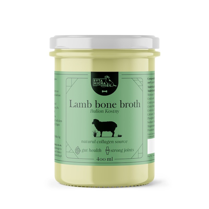 Dawkowanie: 12ml bulionu / 1kg masy ciała psa