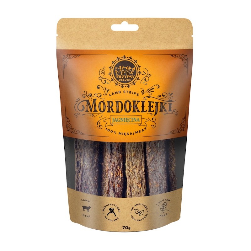 TRZYPSY Mordoklejki to w pełni naturalne gryzaki dla psów, wykonane ze 100% mięsa w formie podłużnych pasków. Nie zawierają konserwantów ani barwników. Przysmak ten jest smaczny i pożywny, stanowi doskonałe uzupełnienie codziennej diety naszego pupila. Idealnie sprawdzą się jako nagroda.