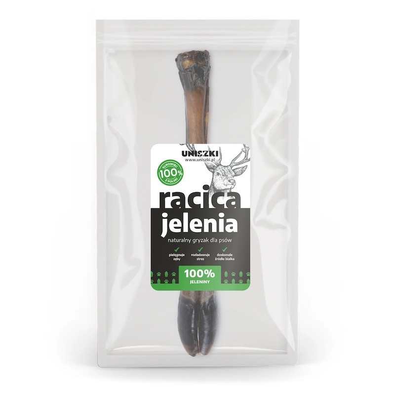 Racica jelenia jako gryzak dla psów to prawdziwy rarytas dla Twojego psa. Będzie żuł i gryzł, a ta twarda przyjemność pomoże utrzymać jego uzębienie w świetnej formie. To jak wizyta u psiego dentysty, ale bez stresu. Racica jelenia to także znakomita zabawa dla psa. Twój czworonóg będzie się czuł jak prawdziwy łowca, tropiąc i atakując tę twardą pyszność. Ale najważniejsze jest to, że racica jelenia to czysta natura. Nie ma w niej żadnych sztucznych dodatków, konserwantów czy sztucznych barwników. To przekąska prosto z lasu, która dodaje energii i radości
